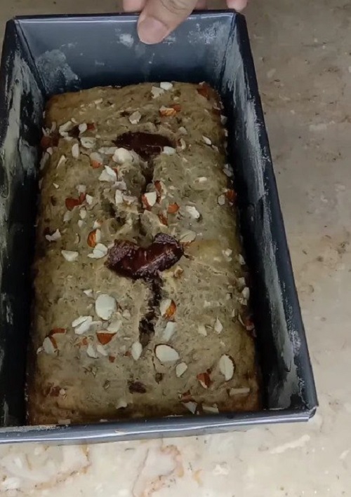 الآن يأتي سحر الموقد! سخني مقلاة غير لاصقة على نار متوسطة منخفضة وأذيبي فيها كمية صغيرة من الزبدة. نسكب عجينة خبز الموز في القالب، ونوزعها بالتساوي. غطي المقلاة واتركيها تطهى على نار خفيفة. المفتاح هنا هو الصبر. يضمن الطهي على نار خفيفة أن ينضج الخبز دون أن يحترق من الخارج. بعد مرور بعض الوقت، ستلاحظ تحول الحواف إلى اللون البني الذهبي، والرائحة تملأ الهواء – وهي علامة أكيدة على أن خبز الموز الخاص بك في طريقه إلى الكمال.