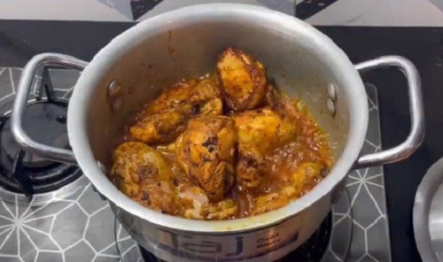 بمجرد أن يتبل الدجاج إلى درجة الكمال، فقد حان الوقت لإشعال الموقد. احرق قطع الدجاج المتبلة حتى يصبح لونها بنيا ذهبيا ومتفحمة قليلا، مما يضفي عليها نكهة الدخان. في مقلاة منفصلة، يُقلى البصل والطماطم حتى يتشكل مرق سميك ولذيذ. أضيفي قطع الدجاج المشوية إلى المرق، واتركيها على نار هادئة وتتشرب النكهات الغنية. قم بإنهاء الطبق بإضافة كمية كبيرة من الكريمة، مما يضفي ملمسًا مخمليًا على الماسالا.