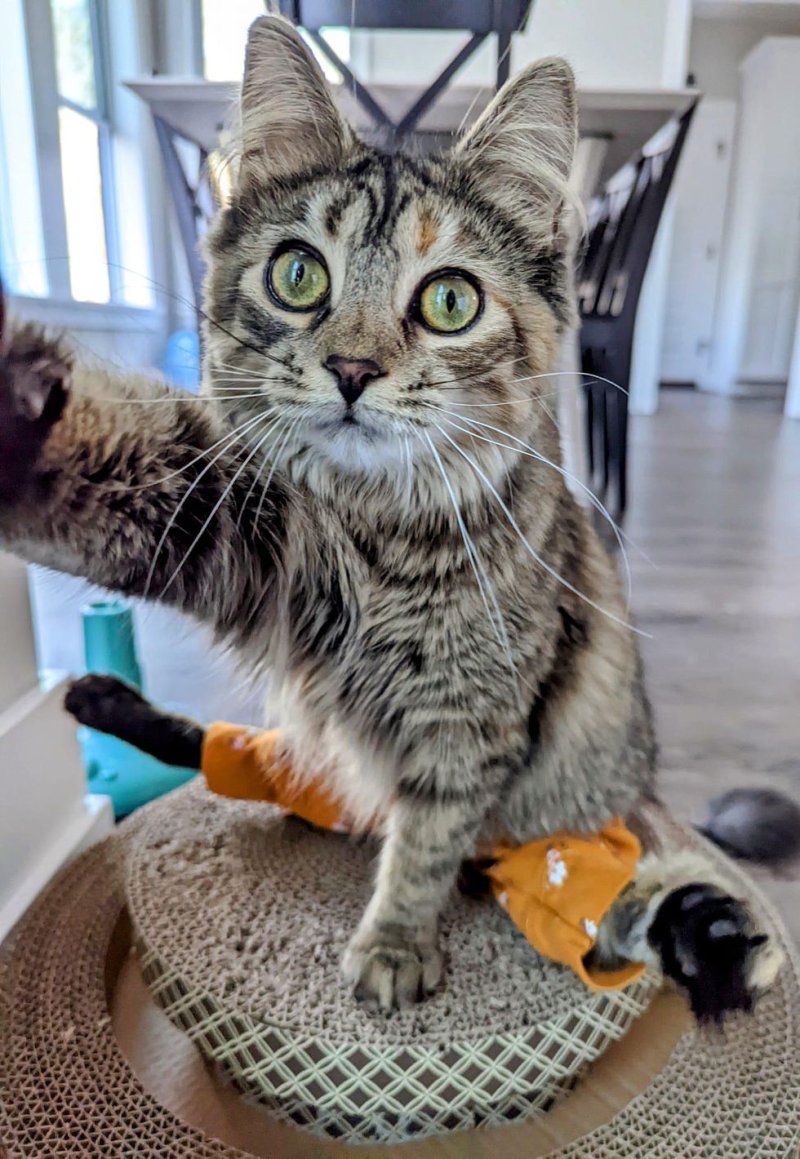 “Merida’s favorite activities are to enjoy the sun on the balcony, run around the house with relatives, and play. She is my first special kitty, and she showed me how even a paralyzed kitten can flourish. I am happy and proud of her,” says Merida’s guardian.