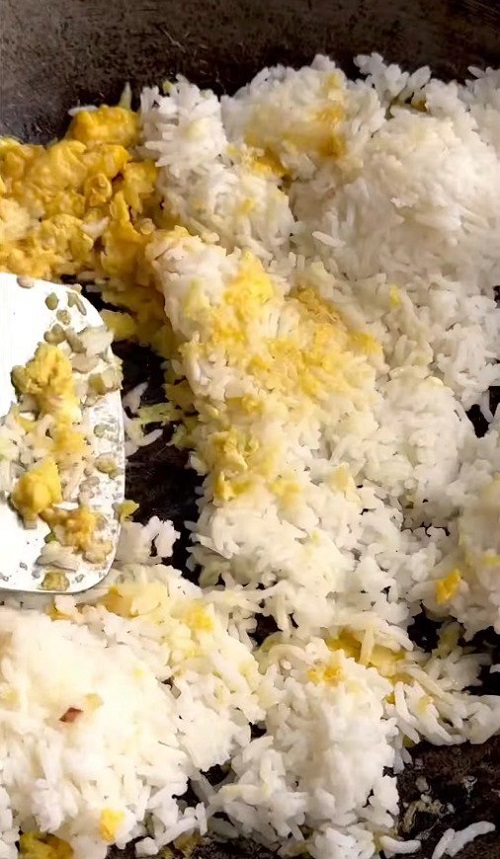 Begin by heating a large skillet or wok over medium-high heat. Add a splash of oil and pour in the beaten eggs. Stir gently until the eggs are fully cooked but still tender. Remove the scrambled eggs from the pan and set them aside.
