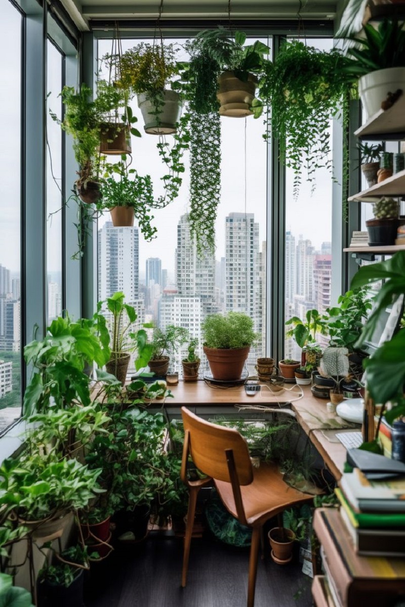 Houseplants are not only aesthetically pleasing but can also improve air quality and mood. Place a few small potted plants on your desk or shelves to add a touch of greenery.