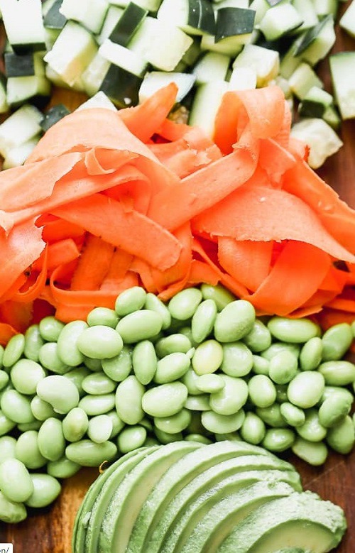 Now, let’s introduce a burst of color and crunch to your poke bowl. Scatter diced cucumber, shredded carrots, and shelled edamame over the rice. These fresh vegetables not only enhance the visual appeal of your dish but also contribute a variety of textures and flavors. The crispiness of the cucumber, the sweetness of the carrots, and the earthy notes of edamame create a harmonious medley that delights the senses.