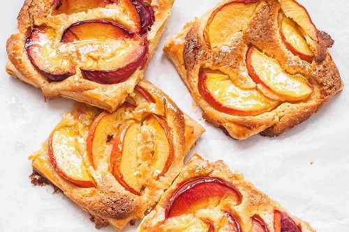 Before these tarts venture into the oven, sprinkle the stone fruits with a touch of turbinado sugar. This addition enhances their natural sweetness and adds a delightful crunch to every bite. As your tarts bake, the puff pastry will rise and envelop the frangipane and stone fruits in its embrace. Watch through the oven window as the tarts transform, the pastry turning golden brown and the fruits caramelizing to perfection. The aroma that fills your kitchen will be nothing short of heavenly, promising a delectable treat that’s as delightful to the senses as it is to the taste buds.