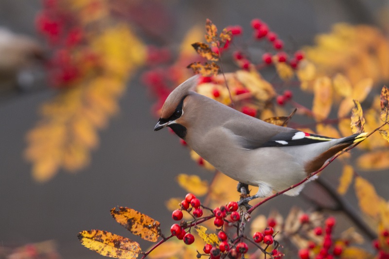 One of the most distinctive features of Bohemian Waxwings is their plumage. With soft gray-brown tones, striking wingbars, and the iconic red wax-like tips on their secondary feathers, they stand out in the winter landscape. Their unique mask-like markings give them an air of mystery, making them a favorite subject for bird photography.