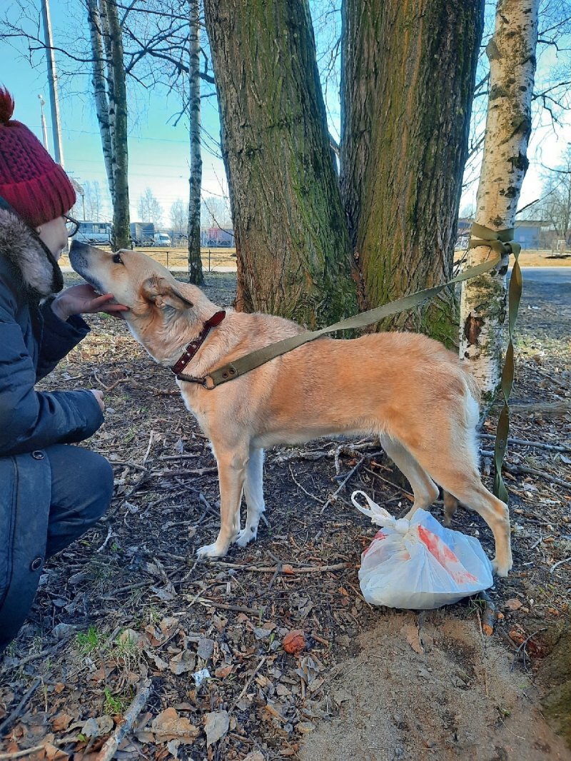The dog lived with the family and at some point became unwanted. The former miserable owners came up with no other solution than to simply tie the dog to a tree in the park.