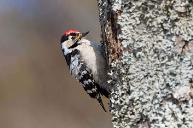 The Greater Spotted Woodpecker (Dendrocopos major) is a medium-sized woodpecker known for its distinctive black and white plumage. Males sport a bright red patch on the back of their heads, distinguishing them from females. Their strong, chisel-like beaks are well-suited for drumming on tree trunks and extracting insects from the wood.