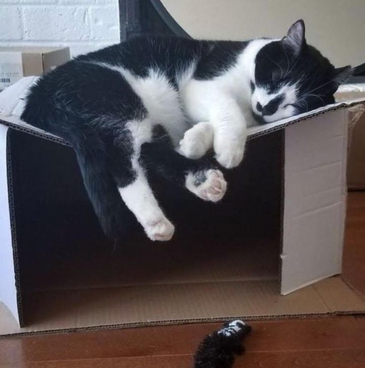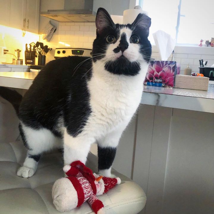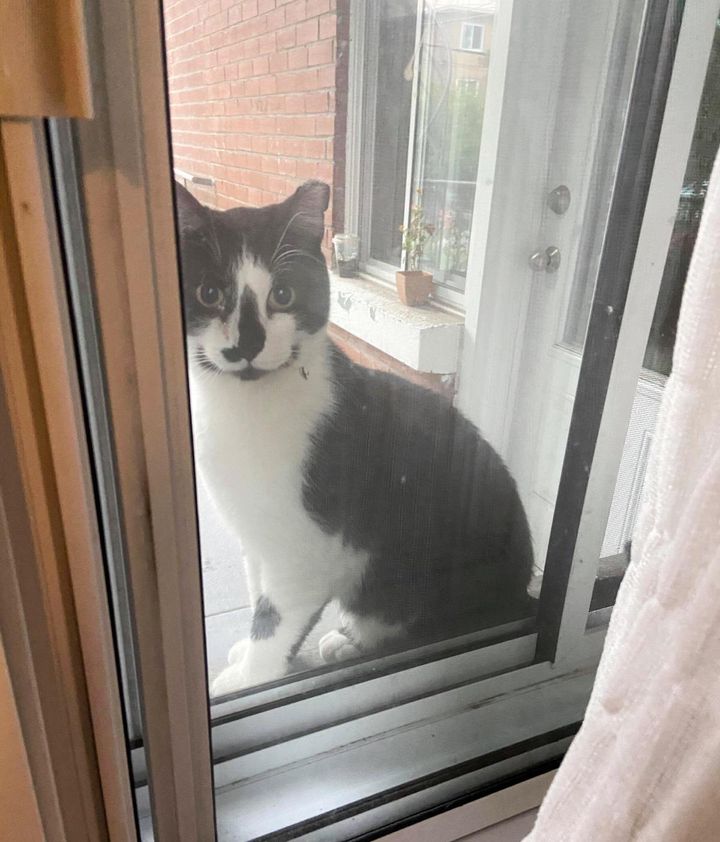 A resident of the Canadian city of Montreal named Milena saw this cat near her house. A homeless black-and-white cat was looking for food, and with hungry begging eyes looked right into her window. The woman accepted the guest – she left it water and food, after which the cat began to come to her house every day. Over time, they became friends.
